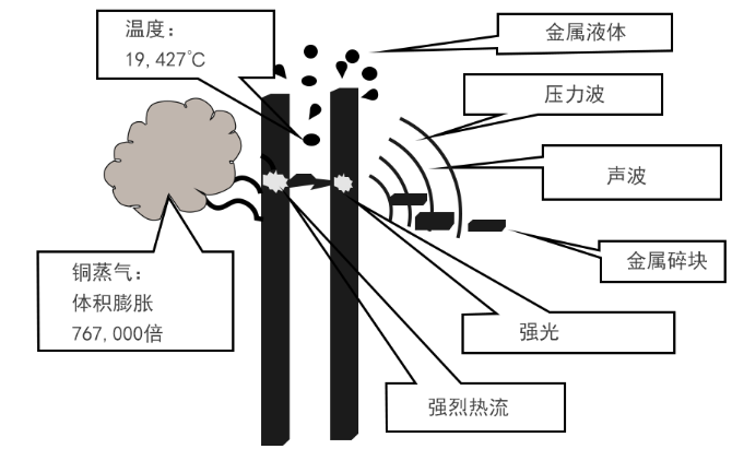圖1-1銅排之間產(chǎn)生的電弧及其效應(yīng)